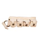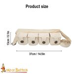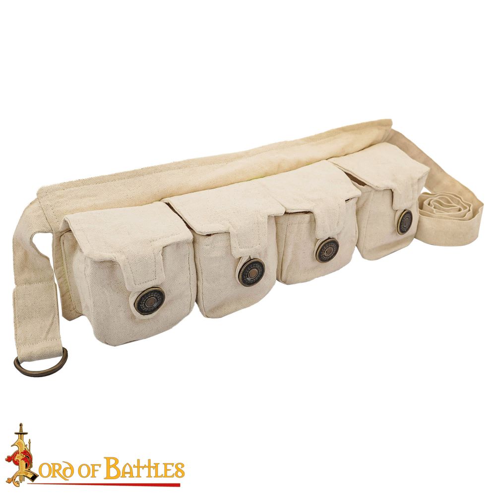 This Rogue’s Utility Belt is an ideal waist or chest bandolier for all the adventuring tools needed for the professional thief, assassin or swashbuckler. It is crafted from durable and robust stitched cotton canvas cloth and each compartment is held securely closed with a antiqued brass medallion clasp.