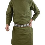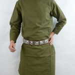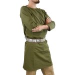 This Roman Tunic of robust olive green cotton has a slightly rougher weave to give it a heightened period appearance.