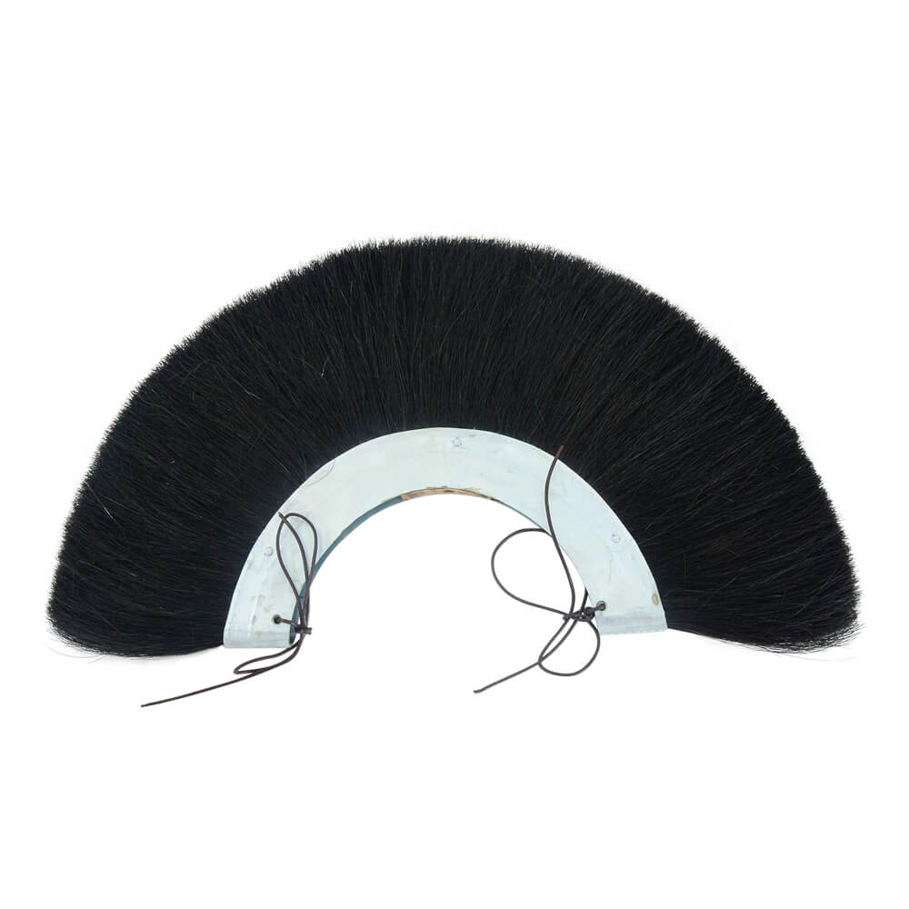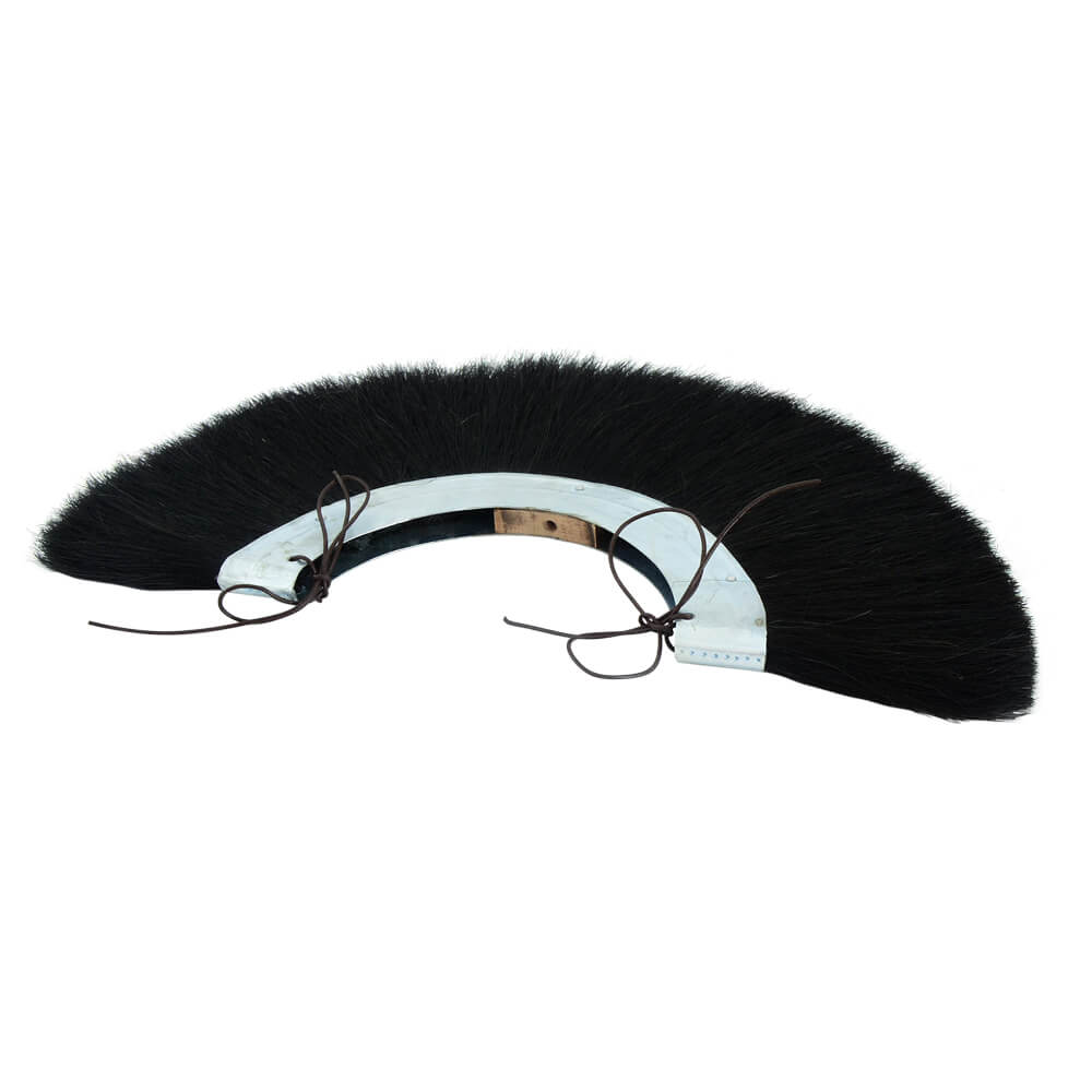 This Roman Helmet Crest is crafted from horsehair which is fitted to a steel base. It has a pre-drilled hole in its base that allow it to be mounted onto a crest holder. It can be used both as a transverse or front-to-back crest, depending on the type of holder used. Leather cords to tie down the crest are included.