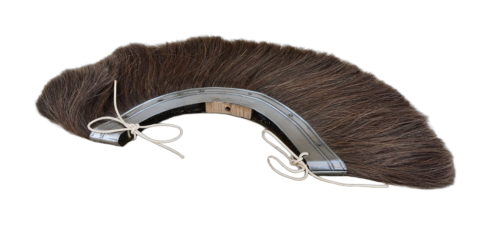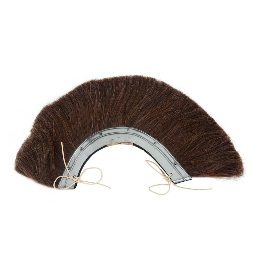 This Roman Helmet Crest is crafted from horsehair which is fitted to a steel base. It has a pre-drilled hole in its base that allow it to be mounted onto a crest holder. It can be used both as a transverse or front-to-back crest, depending on the type of holder used. Leather cords to tie down the crest are included.
