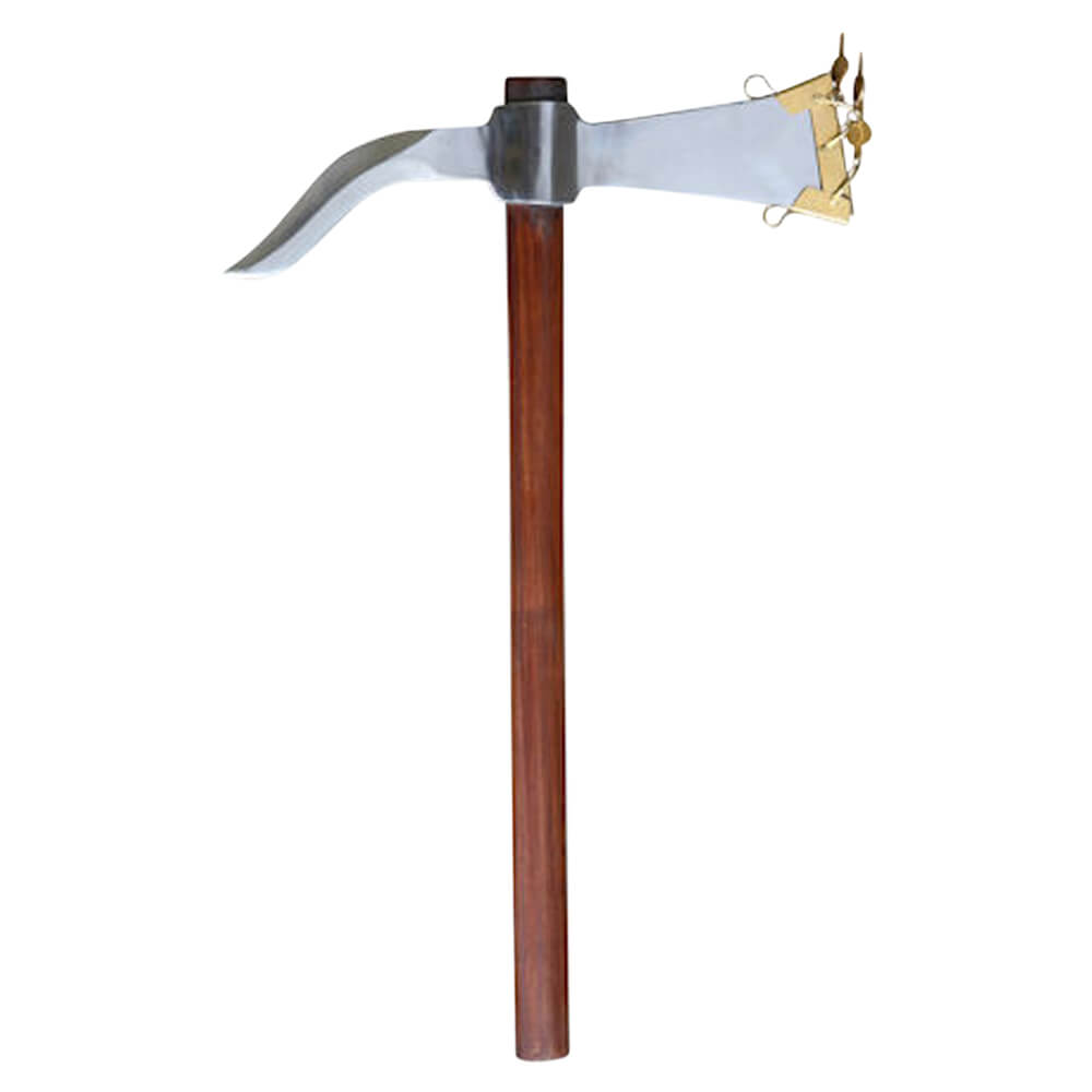 When engaging in a re-enactment or sporting a Roman soldier ensemble, the Roman Dolabra Entrenching Tool will compliment nicely. These pick axes were common during battles and were effective as weapons and tools. Re-created after its original design, this piece features a carbon steel axe-type head with a thin, squared blade on one end and a curved, blade-like spike on the other end. Attached to the head is a heavy wooden shaft. Authentic in its appearance, this dolabra will be a great addition to any historical collection. Overall Length: 30″ Head