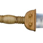 The 2nd Century Long Spatha has a blade crafted from high carbon steel and it has a hilt of carved wood. A brass pommel nut secures the sword tang to the hilt. It is paired with a quality wood-core scabbard which is overlaid in stitched leather and finished with brass fittings.