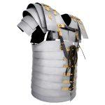 Solidly constructed in 18 gauge steel and based on an original piece, this Lorica Segmentata will fit chest sizes up to 44″ (over garments). Fittings are authentically styled and cast in brass. Total weight is 25 lbs.