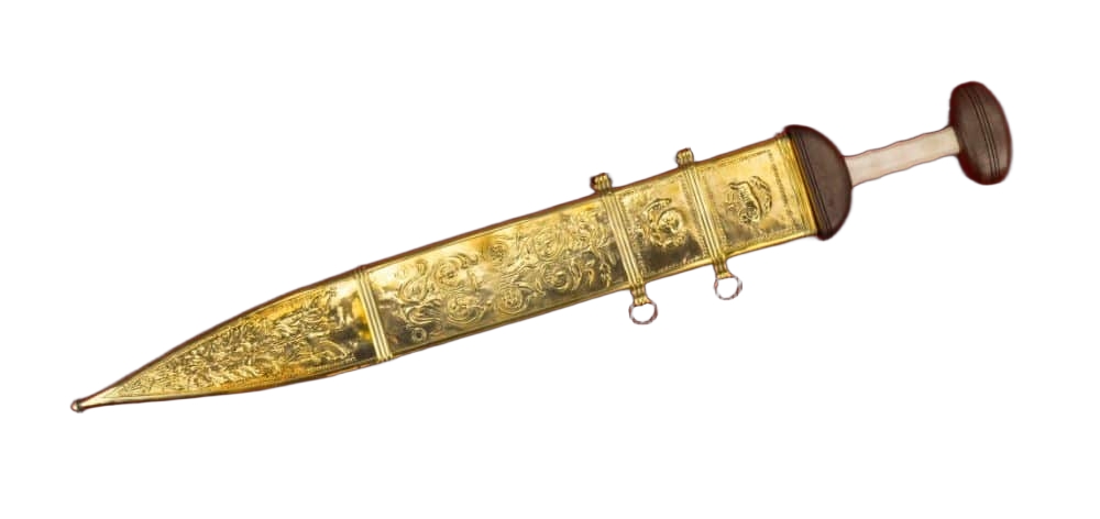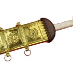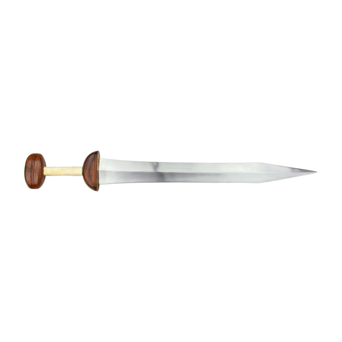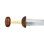 This Roman Mainz Gladius reflects the styles common during the time of the Roman Republic. Featuring an unsharpened carbon steel blade, it has a grip crafted of bone flanked by a solid wood guard and pommel. A leather wrapped wood scabbard with brass plating is also included. With authentic design, this is a great addition to any collection.