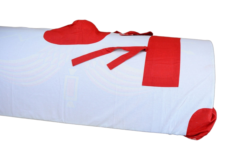 This Roman Shield Cover is crafted from cotton; it covers the front of the shield and is tied to cover the back and cinched close with corner drawstrings. It will fit the following Deepeeka-made Roman shields: AH3853L AH3853NP AH3992L AH6718L