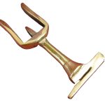 This plume holder is used to secure a crest to a Roman helmet. The brass holder slides into its slot and the crest is put atop the fork-like prong. The crest then has its ends tied to the helmet to securely affix it into place. Originally intended for Deepeeka Helmet 6053N, this plume holder may fit other similarly crafted helmet slots. This plume holder is for a transverse crest alignment. This narrow fitting is intended to be used for the thinner, metal based crests.