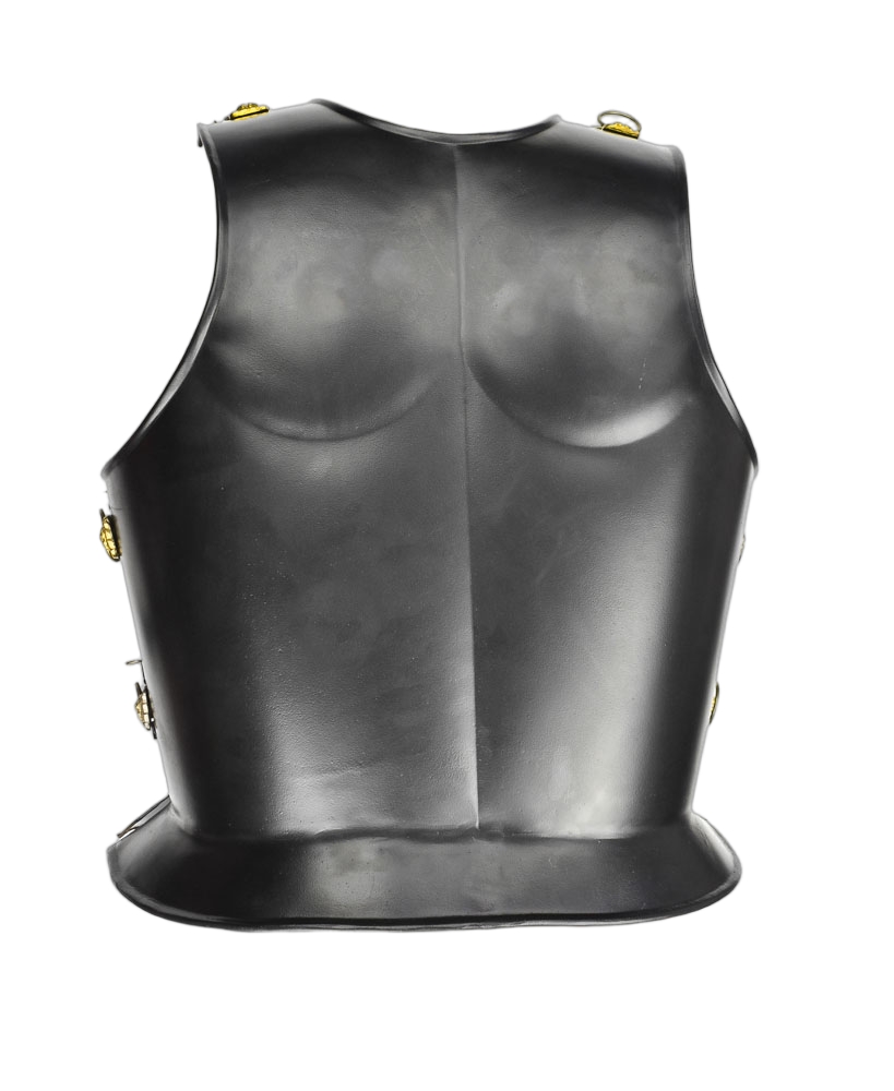 Our replica is superb, made out of 18-gauge steel. The armor is secured by metal pins and will fit chest sizes up to 48″.