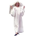 This Ruffled Chemise fits women of all sizes. It made of 100% cotton and is washing machine safe. It features sleeves of full arm length with elastic cuffs at the end and a tousled belted neck. It looks great with any of our gowns.