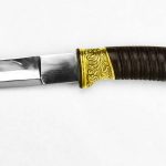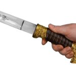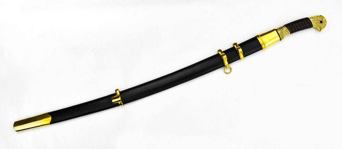 The Shashqa sword is matched with a wooden scabbard which is tightly bound in leather and completed with brass fittings.