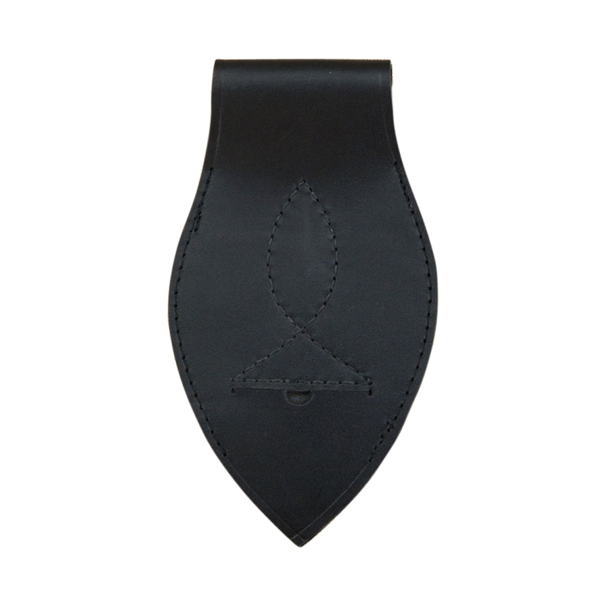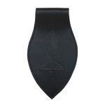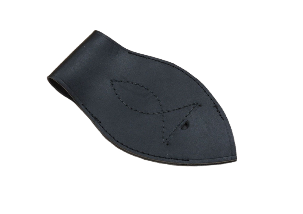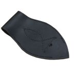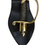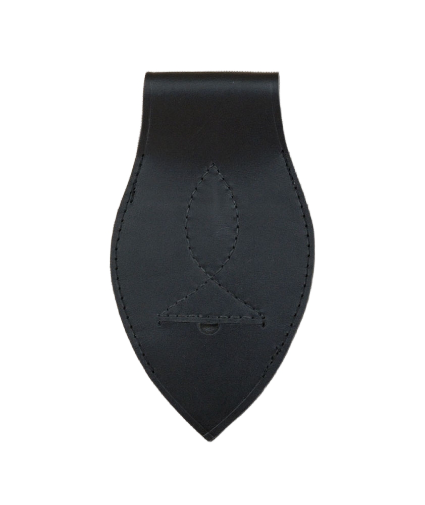 This durable leather frog will allow you to wear your saber or thin-bladed cutlass vertically from your sword belt; its notched design will tightly grip a scabbard and its design allows it to be put onto and taken off a sword belt with ease. It is best used for a scabbard with a metal knob or tab which will act as a stopper to fit in the frog notch. It can be used by both left and right handed people. The leather is thick and durable and sturdy stitching is used to construct this sword frog.