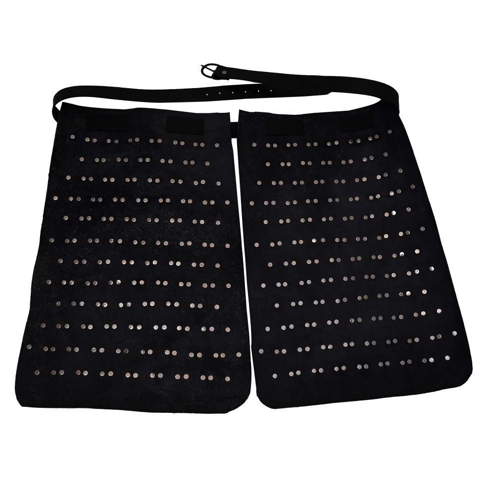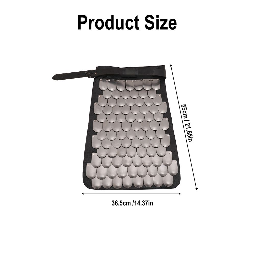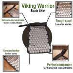 This scale armor fauld / skirt can be worn on its own or matched with the Scale Armor Cuirass by Lord of Battles (SNSA9111N20) as the foundation for an impressive suit of scale armor. It is crafted frome 20 gauge steel scales riveted to a backing of black leather. The scale fauld has an integrated belt of thick and tough leather which is used to fit it about the waist for wear. The thick belt can be adjusted to fit waist sizes of 43″ to 60″ with the existing belt holes on the belt and could be sized a few inches smaller or larger if needed by adding your own holes.