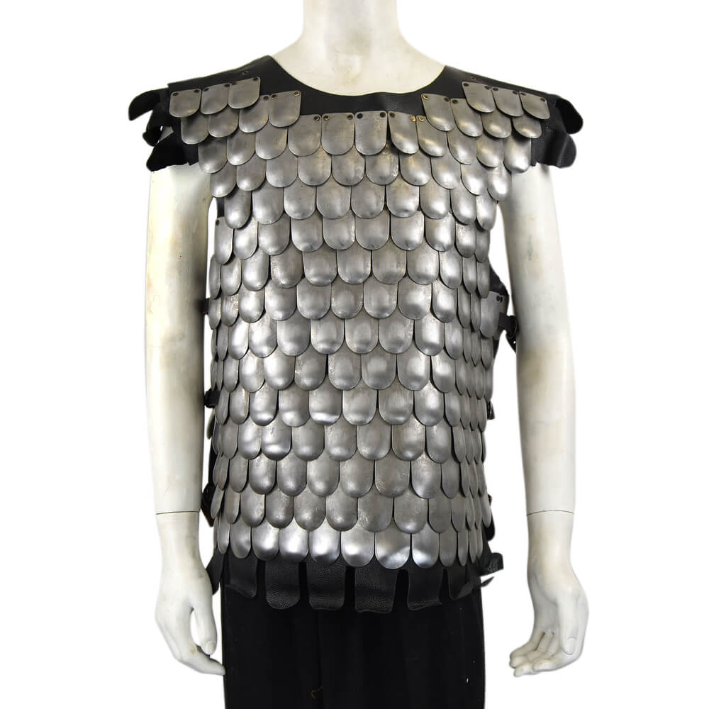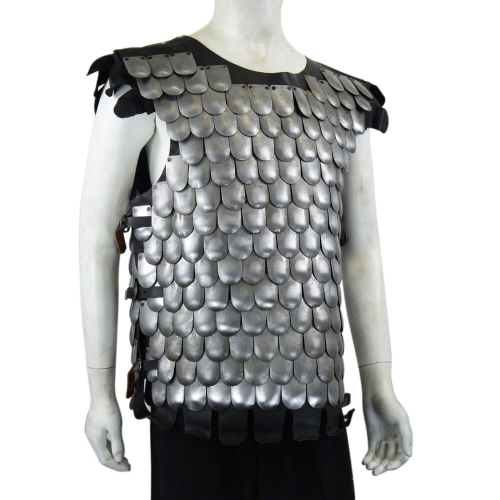 Scale armor is one of the earliest armor types and was widespread throughout many different cultures and periods where it was worn by both warriors and their horses. Falling in line with traditional style, this scale armor coat offers excellent torso protection with its 18 gauge steel scales which are riveted to a black leather backing. To ensure a secure and comfortable fit, side buckles and straps have been included. With authentic design, this armor is great for costumes and re-enactments.