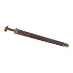 Included with the sword is leather-bound scabbard of wood with antiqued brass fittings and a wooden suspension loop which can be used to sling the sword from your own sword belt or baldric.