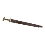 Included with the sword is leather-bound scabbard of wood with tin-plated brass fittings and a wooden suspension loop which can be used to sling the sword from your own sword belt or baldric.