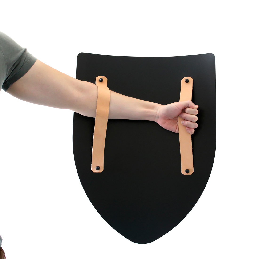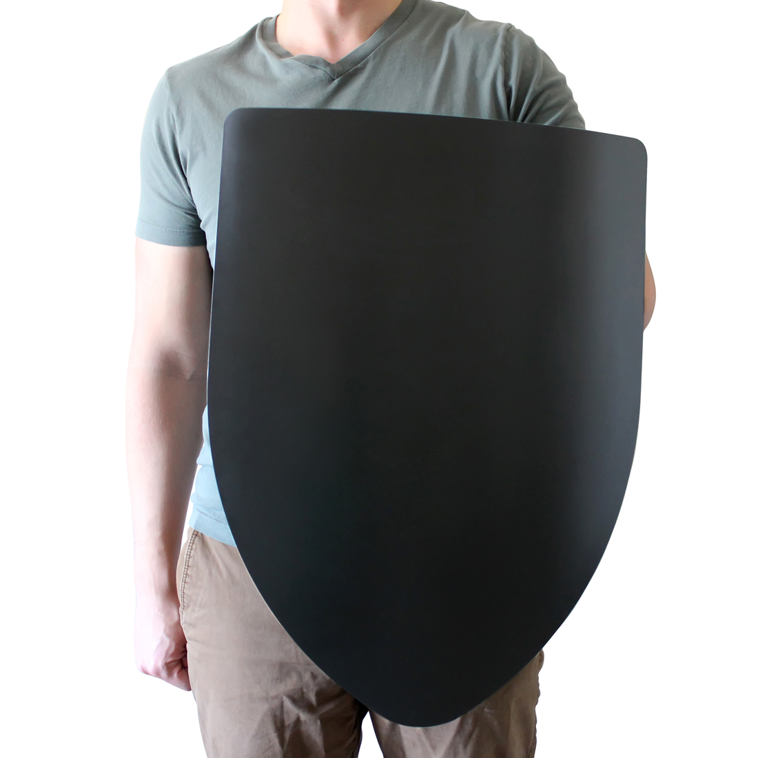 This medieval shield is blank, painted black, making it easy to paint your own design over the top.