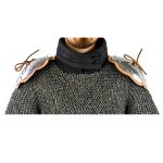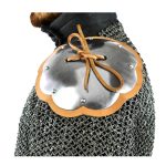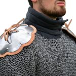 This set of shoulder rondells are an easy way to upgrade the defense of your chainmail, arming doublet or gambeson; they are mounted by tying and securing them onto padded armor through eyelets or woven through the links in chainmail armor to fasten them into place.