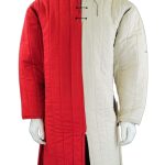 Maximize your comfort and protection with the Front Buckled Gambeson (Red and Natural Duo Tone). With an authentic look, this garment is crafted from durable, quilted cotton with organic cotton felt padding on the interior. Further enhancement comes from brass buckles and straps which secure the front and an arm pit design for ventilation and flexible movement. This gambeson is both pleasant to the touch and stylish and is great for costumes and re-enactments.
