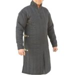 Maximize your comfort and protection with the Front Buckled Gambeson. With an authentic look, this garment is crafted from durable, quilted cotton with organic cotton felt padding on the interior. Further enhancement comes from brass buckles and straps which secure the front and an arm pit design for ventilation and flexible movement. This gambeson is both pleasant to the touch and stylish and is great for costumes and re-enactments.