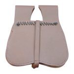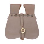 The Soldiers belt pouch has a thin profile, but is crafted from stitched, thick, hardened leather. It can be closed with an adjustable, integrated flap belt and has two integrated belt loops.