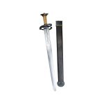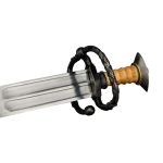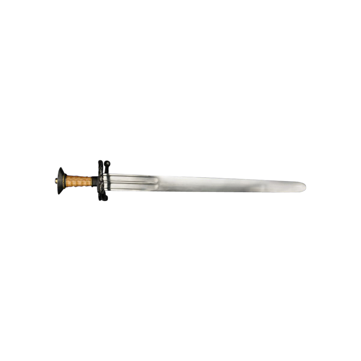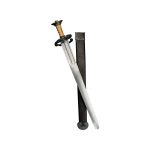 This German Katzbalger sword is based on an original in the Solingen Klingenmuseum dated to 1530 1550. Its broad blade is hand-forged from resilient C60 high carbon steel a steel with properties similar to 1060 high carbon steel. The robust S-shaped guard and pommel are crafted from blued steel and the grip is well-carved and finely polished wood. Brass embellishment on the hilt completes the sword. Included is a durable wood-core scabbard which is tightly bound in well stitched high quality genuine leather. A chape and locket of blued steel with brass detailing to match the sword completes the scabbard.