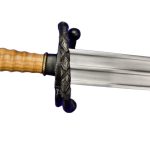 The iconic German and Swiss Landsknecht mercenary companies were a dominating force on the late 15th and 16th century battlefield. Impossible to miss with their outlandishly colored and voluminous style of dress, their carnival-esque appearance and predilection for purposed swagger was a velvet glove over an iron fist; their mercenary companies were a disciplined core of pikemen and halberdiers supplemented by greatswords and eventually arquebusiers. As their lives were deemed to be short and fierce these men were permitted to break social dress code laws and dress themselves in colors and stylings usually reserved for nobility and the distinct styling of their armaments reflected a desire for bold fashion crossed with grim utility. Though polearms and larger weapons were primary weapons, the secondary sidearm weapon for almost all of these mercenary troops would have been a Katzbalger or Messer. The Katzbalger in particular was optimally designed for the type of warfare that Landsknecht mercenary companies engaged in. Battlefield engagements often resulted in a clash of pike and halberd regiments and in the scrum of such a chaotic melee a shorter sword would be needed so that it could operate without entanglement.