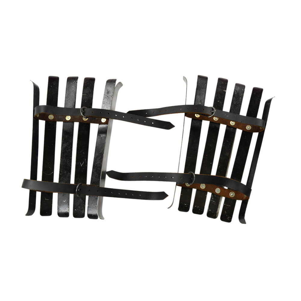 In battle, all it takes is one blow to the leg and you’re down for the count. So, why risk it when the Splinted Greaves are here to give you the protection you need? Featuring 16 gauge steel bands riveted to durable leather strips, this pair offers protection for the lower leg with an adjustable steel buckle and leather strap to hold them in place. With authentic design, these greaves promise to be effective and are great for costumes and re-enactments. 16 gauge steel