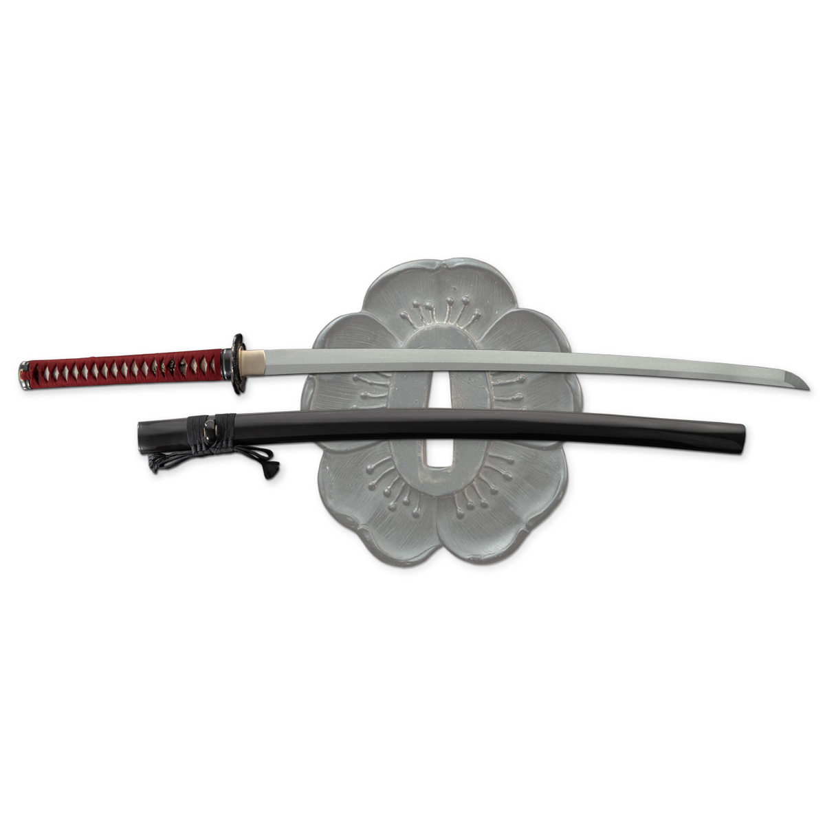 The sakura, the cherry blossom, explodes brilliantly and gorgeously in the Spring but then soon falls. History teaches us there was no greater glory for a samurai warrior to fall in battle in a field of scattered cherry blossoms. Our Spring Sakura Katana represents this beautiful Japanese metaphor of the transience of life. The blackened fuchi, kashira and ornate stainless cherry blossom tsuba accents the forged and through-hardened 27″ blade. The 5160 forged high-carbon steel blade features a 1 ½” kissaki (point) and marquenched to an edge hardness of 57HRc with blade geometry conducive to rigorous cutting without chipping or deformation on soft and semi-hard targets.
