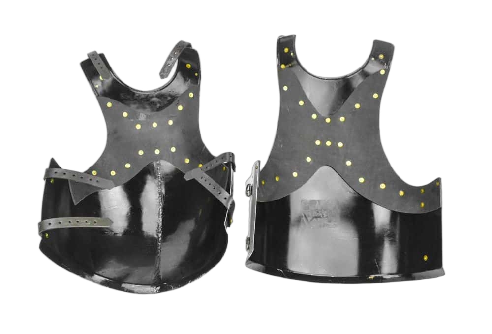 The Warriors Cuirass is a composite of sturdy steel plate and thick leather with robustly riveted construction. The armor is donned and adjusted to size with a set of strudy buckles and tough leather straps. A great centerpiece for your mercenary, warrior or guardsman ensemble.