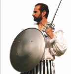 The small steel domed shield remained popular from the 13th to the 17th century. Many soldiers preferred this to the full-size shield to be able to move more quickly. Made by Windlass Steelcrafts® of 18 gauge steel with leather grips. Minor assembly required. $10.00 additional Shipping & Handling charge with item. No Express or Air Shipping Available. Diameter: 23-1/8″
