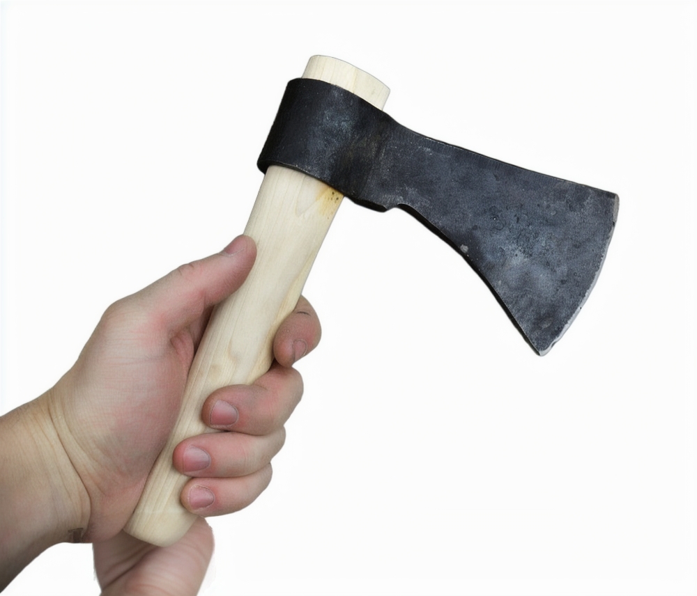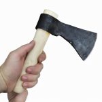 This Tomahawk has a head of high carbon steel and a handle of Hickory wood.