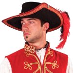 Dating back to a time of adventure comes the Suede Musketeer Hat, which is a truly stylish piece! Made of soft suede, this selection boasts of rich period trim on the edges with a matching hatband accented by an antique button. It also features a hidden wire in the brim to make this head covering exactly what you want it to be for each occasion. Great for costumes and reenactments.