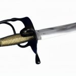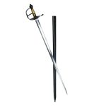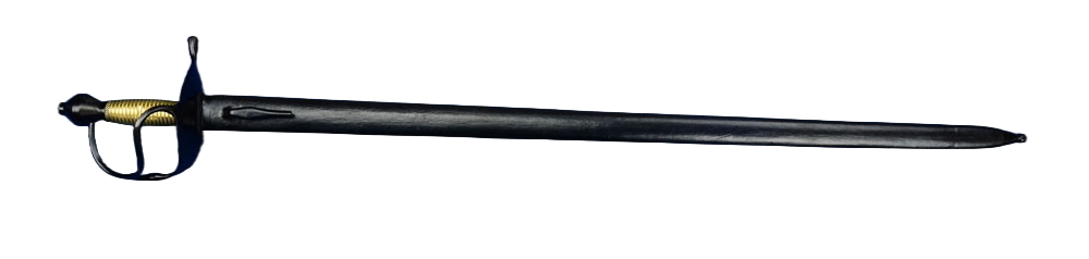 This Swedish M1685 sword has a blade of 1055 high carbon steel which is peened into a hilt of blackened steel. The wood grip is completed with intricate, braided brass wire. The included scabbard is wood which is overlaid in leather and completed with blackened steel accents.
