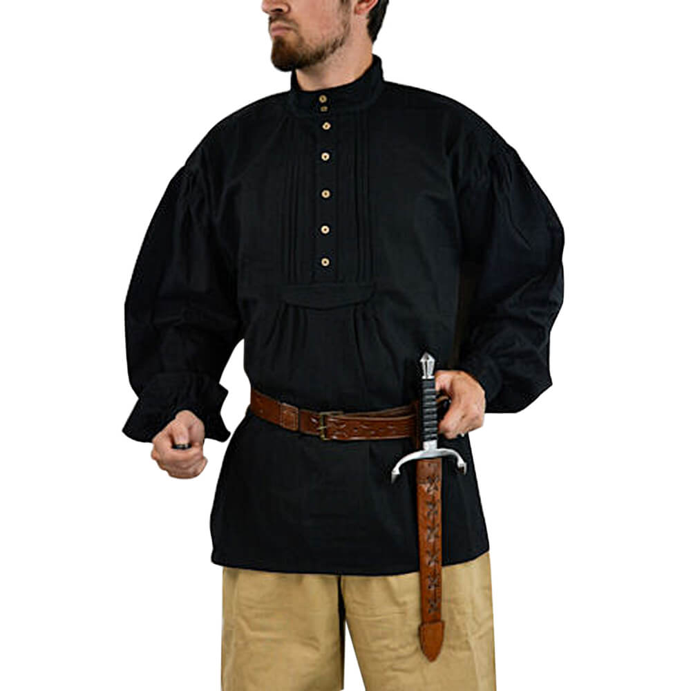 This Swordsmans Shirt is made from 100% cotton and is finished with wooden buttons on its front and on the sleeve cuffs. Its loose sleeves and partial split sides ensure that the warrior within has maximum freedom of arm movement whilst looking appropriately stylish.