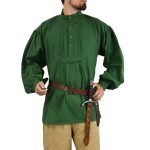 This Swordsmans Shirt is made from 100% cotton and is finished with wooden buttons on its front and on the sleeve cuffs. Its loose sleeves and partial split sides ensure that the warrior within has maximum freedom of arm movement whilst looking appropriately stylish.