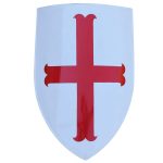 The Medieval Templar Knight Heater Shield pays tribute to one of the richest and most prominent groups of the Western Christian military. This powerful order of Knights lasted for two centuries and left their mark in the pages of history. On the battlefield, shields were a symbol of identification like this handsome hand painted piece which features a red cross against a grey background. Crafted from 18 gauge steel with a sizable surface to defend, this shield is historically authentic in its design and is perfect for costumes, re-enactments, and displays.