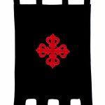 The Templar Order of Calatrava was the first military and religious order founded in the Kingdom of Castile, but the second to receive papal approval. The papal bull confirming the Order of Calatrava as a Militia was given by Pope Alexander III on September 26, 1164. The Order of Calatrava was founded by Abbot Raymond of Fitero with the original purpose of protecting the town of Calatrava, located near present-day Ciudad Real. As their numbers and strength grew they were invited in 1147 by the King of Castile, Alfonso VII, to protect a castle he had taken from the Moors. The castle was called Calatrava (Arabic Qal’at Rabah: ‘fortress of Rabah’). The Templars established a garrison there and stayed for ten years. They were replaced by a militia of Cistercian laymen, under the supervision of Raymond, Abbot of the Cistercian monastery of Fitero. No doubt these local herdsmen and laborers would have had a personal grudge against the Moors, whom they fought with great enthusiasm. In 1187, a general chapter at Cîteaux gave these Knights of Calatrava their definitive rule, which was approved in the same year by Pope Gregory VIII. This rule retained the Cistercian customs required of laymen, plus the obligation to wear their armor 24/7 and be ready to fight whenever the need arose. (Not very comfortable, but following vows of silence, nobody complained.) Initially, these Knights of Calatrava were hugely successful and were rewarded by grants of land from the King of Castile. But by 1195, after a surge of new Muslim recruits from Africa, the Knights were overpowered and the Moors retook the castle which they kept for another 17 years. The Calatravas then recovered possession of the stronghold and from there spread to the far corners of Iberia. The Templar Knight Order of Calatrava Banner by Marto of Toledo Spain features a black field with edging in black. In the center of the field is the Templar Calatrava cross in red. Cotton Banner with Calatrava cross embroidered on one side. Cotton Banner with embroidered Templar Calatrava cross on one side