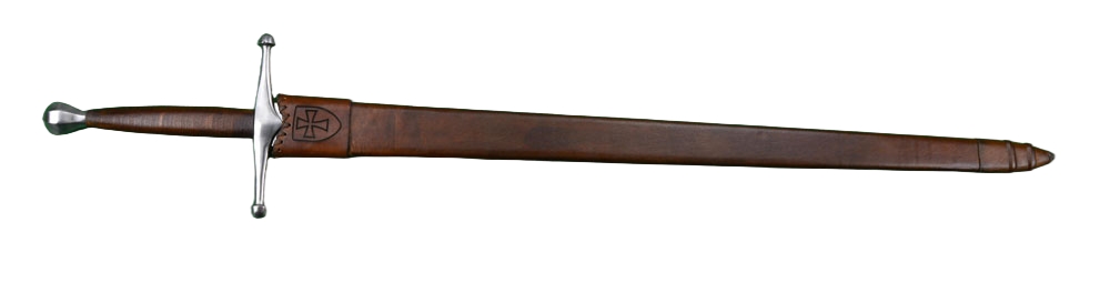 The sword comes with a wood-core scabbard which is wrapped in stitched and fitted leather. Inscribed on the locket on a single side is a Teutonic Cross. Please Note that it is normal for this item to have a gap between the crossguard and scabbard when fully sheathed. There is matching dagger to this sword which is sold separately (AH6991F) it is linked in a photo link beneath the photos.