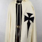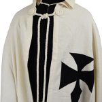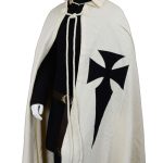 This Teutonic Knights Cape with hood is crafted from rough-woven cotton; the rough weave simulates the more handcrafted appearance of medieval period cloth. The cross is stitched to the cape for a more authentic construction. Two thick hanging cords allow it to be tied across the chest.