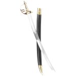 The English Cutlass Pirate Hanger was popular in the 1600s and 1700s and was used for close quarters combat. Featuring a high carbon steel blade, this sword boasts of a heart-shaped brass guard and a leather scabbard with brass throat and tip. With great care and attention to detail, this is a worthy addition to any collection.