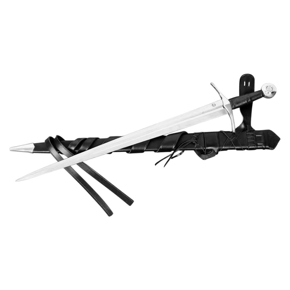 Beautifully constructed from 5160 High Carbon Steel and Dual Tempered for both cutting and thrust combat, the medieval knight sword is not only one of our all time best selling swords, it is also among our staff?s top 5 favourite pieces. Not only for its clean fluid artistic lines and simplicity, but for its exceptional handling characteristics. This battle ready sword is quick, responsive and allows exceptional mobility in close quarter combat.