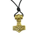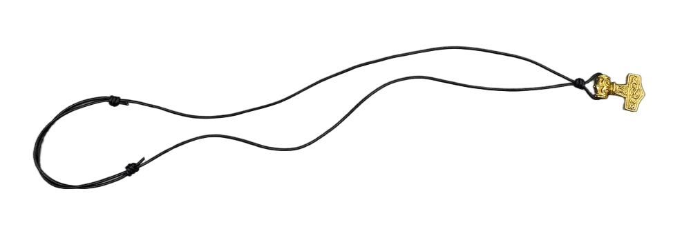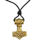 This Thor?s Hammer pendant is cast from fine solid brass and is detailed on both sides. Included is a knotted leather cord for wear.