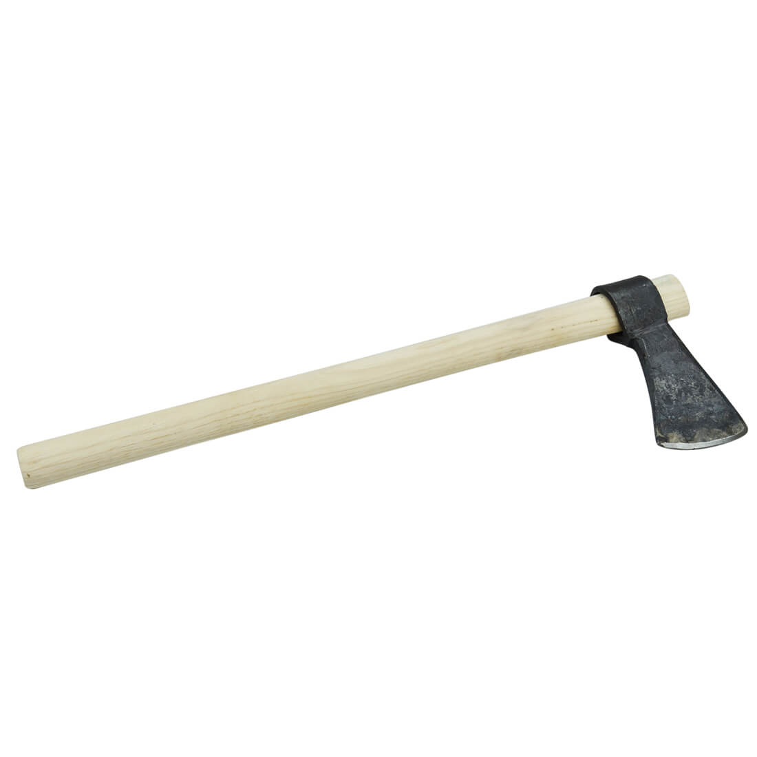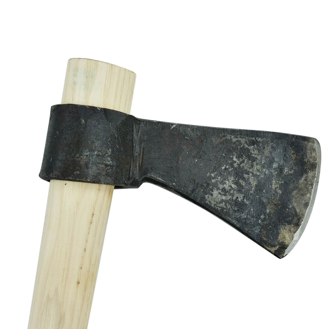 This Tomahawk has a head of high carbon steel and a handle of Hickory wood.