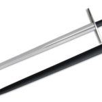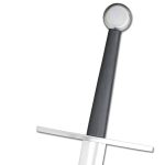 Our Tinker Bastard swords are based on the Oakeshott Type XVIIIA and is designed so that both the sharp and blunt versions of this sword will perform identically in the hand, offering the possibility of sparring and cutting with swords that feel and respond in exactly the same way. The sharp blade is produced in two slightly different versions – this version is diamond-sectioned throughout but fullered for about one third of its length.Wheel-type pommels are sized to provide a grip for the second hand when required, and the straight tapering cross provides excellent hand Protection.