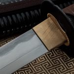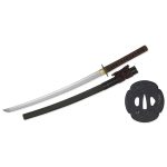 The Tori XL Katana from Hanwei combines truly elegant furniture and a powder-steel forged and folded blade with the functionality of our Performance Series. Designed for maximum cutting power in heavy targets, the Tori Elite katana features a “Flying Crane” themed Tsuba and Fuchi/Kashira with Kabuto inspired Menuki. The high quality brown leather Tsuka-ito is wrapped over black Same. The Saya is wrapped at the mouth with black-lacquered rattan and finished in a textured brown. This katana sword is built for Martial Artists.
