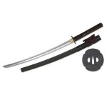 The Tori XL Light Katana from Hanwei combines truly elegant furniture and a powder-steel forged and folded blade with the functionality of our Performance Series. Designed for quicker cuts in heavier targets, the Tori XL Light katana features a Flying Crane themed Tsuba and Fuchi/Kashira with Kabuto inspired Menuki. The high quality brown leather Tsuka-ito is wrapped over black Same. The Saya is wrapped at the mouth with black-lacquered rattan and finished in a textured brown. Built for Martial Artists