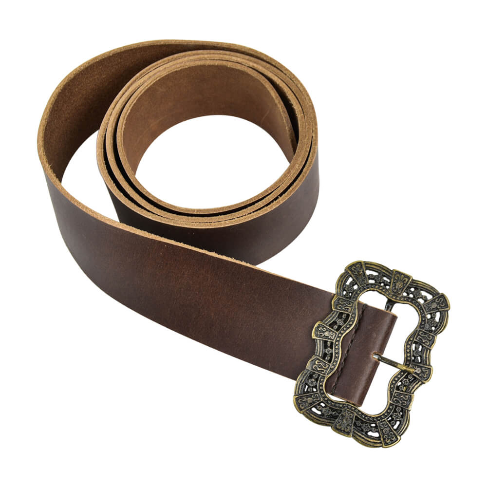If you are looking for the perfect finishing touch to your pirate ensemble, the Totrtuga Swashbuckler Pirate Belt is sure to satisfy. Simple, yt stylish, this piece is crafted from durable leather and accented by a handsome antiqued brass buckle. Great for costumes and re-enactments. Overall Length: 63 1/2”