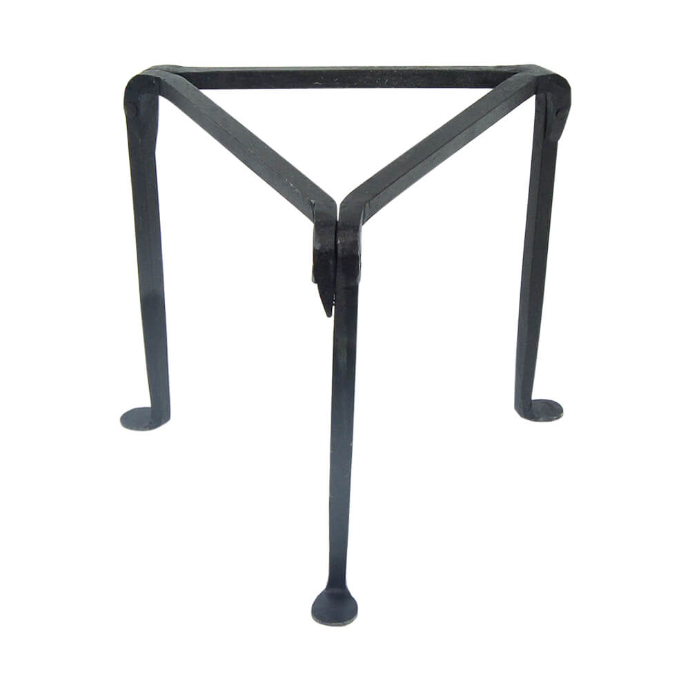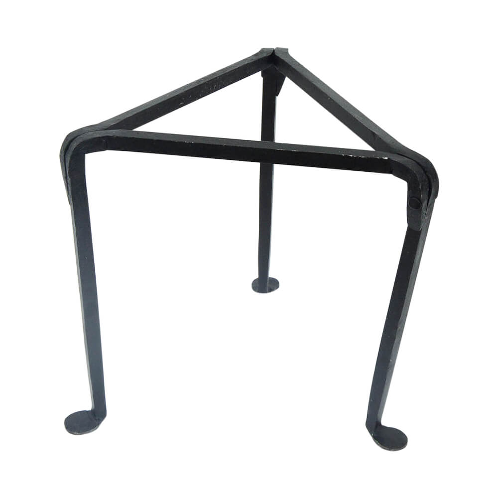 This iron cooking tripod is hand forged from iron and fitted with iron rivets.