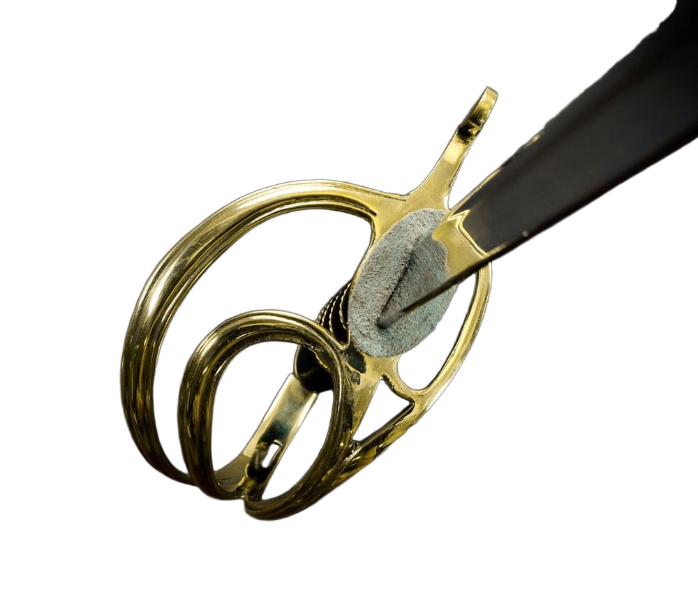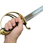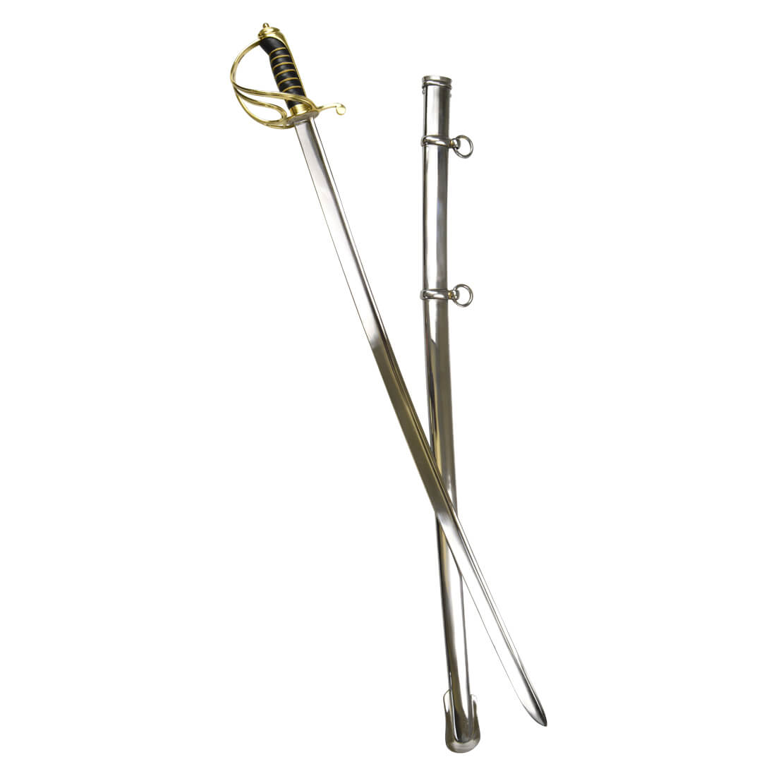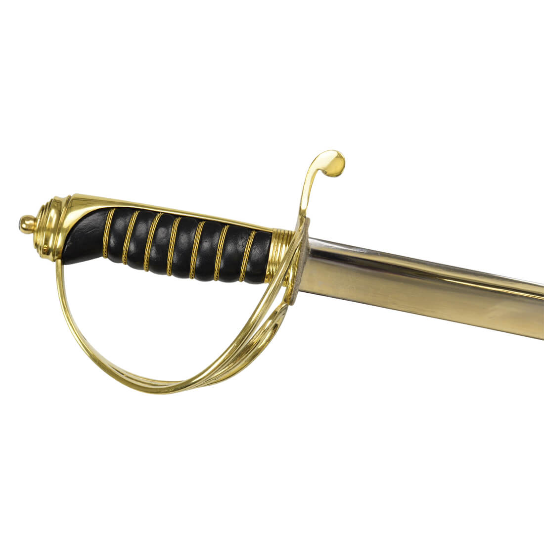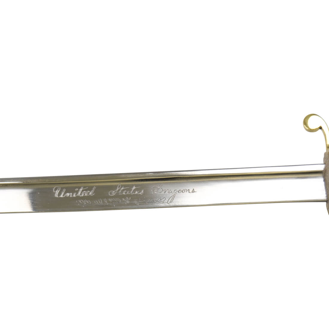 The US M1833 Dragoon Saber has a blade forged from 1055 high carbon steel; it is etched with ?United States Dragoons?? on a single side of the blade. The hilt is crafted from brass and the leather wrapped grip is fitted with bands of twisted brass.