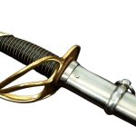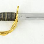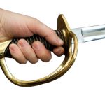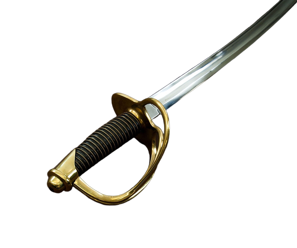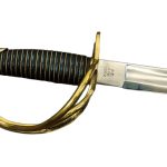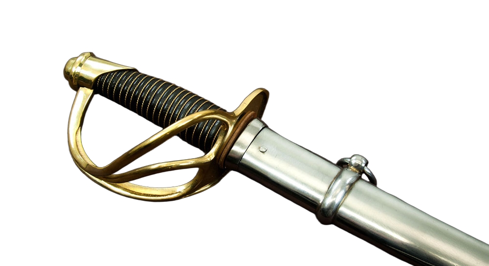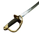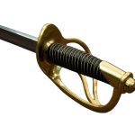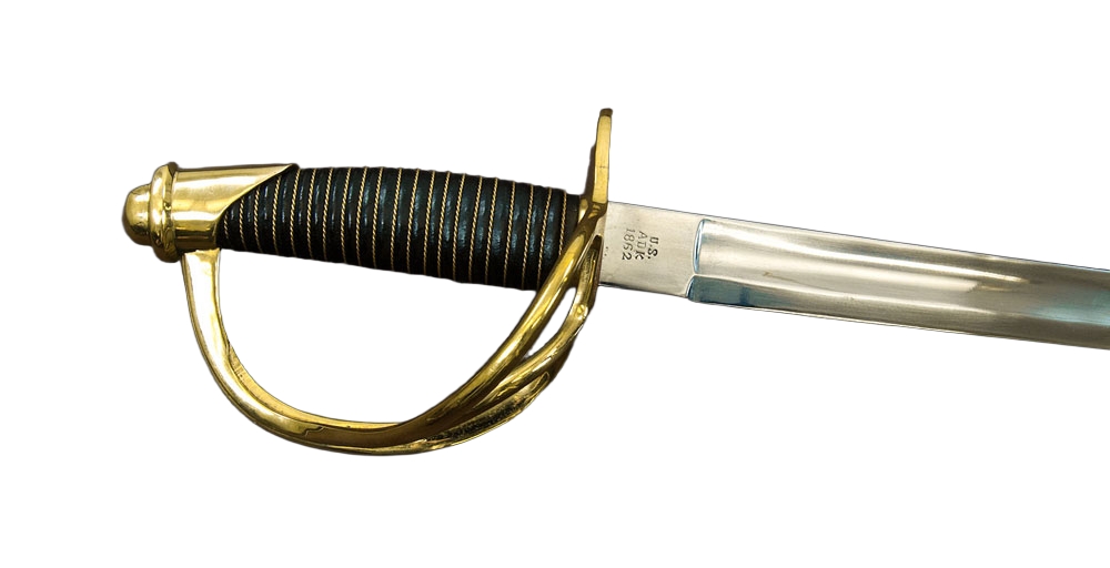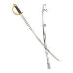 This reproduction of the U.S. Model 1840 Cavalry Saber has a blade of tempered high carbon steel with reproduced Ames manufacturer markings. The sword is robustly mounted into a hilt of brass and the grip is bound in black leather and finished with brass wire inlay. Included is a steel scabbard with steel hanging rings.