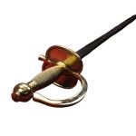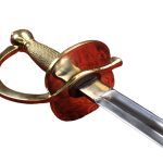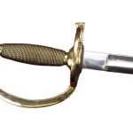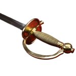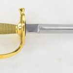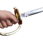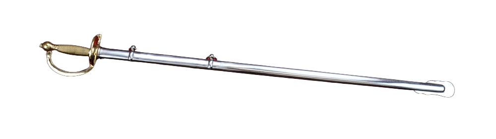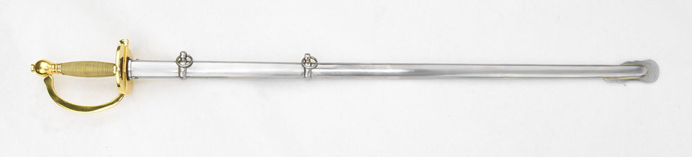 This reproduction of the U.S. Model 1840 NCO Sword has a tempered blade of high carbon steel which is sturdily mounted in a hilt of brass. The grip is wood which was bound in twisted brass wire. Included with the sword is a steel scabbard with steel hanging rings.
